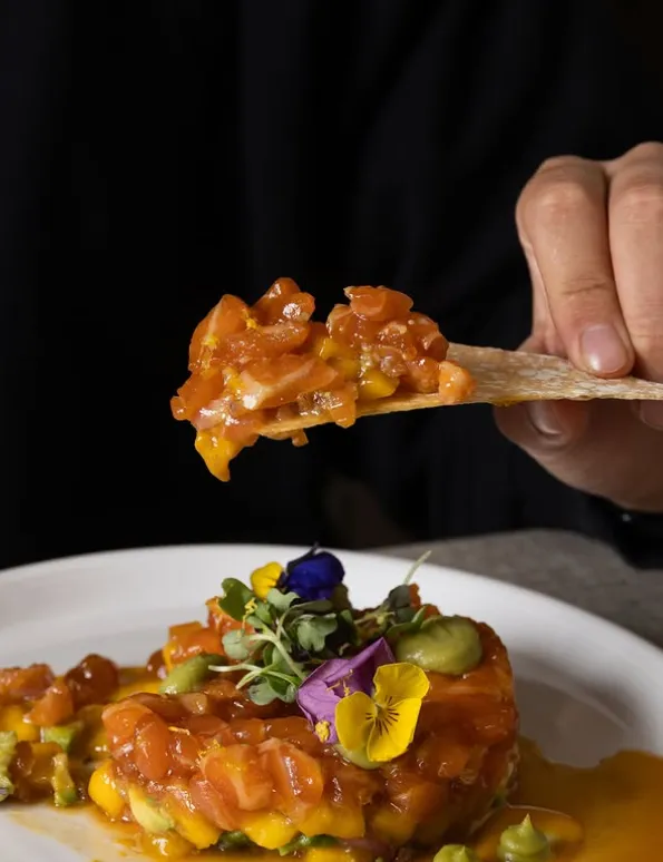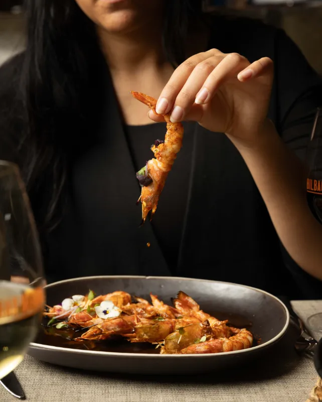 El restaurant destaca per la seva àmplia oferta de broquetes, tapes, broquetes i plats per compartir, així com pescats a la brasa de carbó, arrossos i mitjana de vaca del País Basc. Disposa de dos espais diferenciats: la planta superior amb la millor barra de broquetes i un pis inferior amb zona de menjador i reservat íntim, a més d’una terrassa amb vista a la catedral. A les nits, el local també ofereix música en directe.