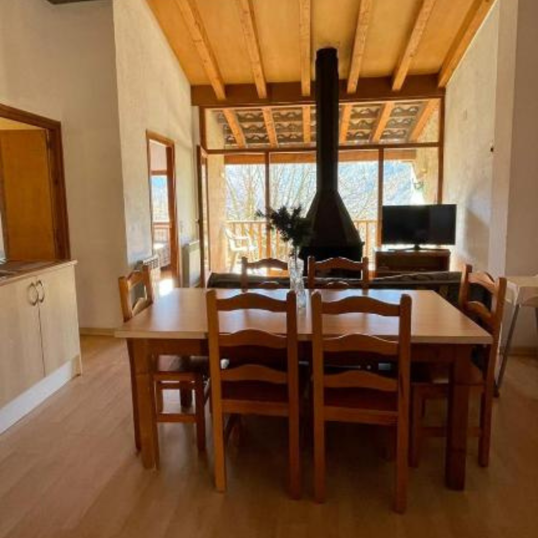 Ideal per a famílies, parelles i grups d’amics, aquesta casa rural és l’opció perfecta per a una estada tranquil·la, acollidora i envoltada de natura al cor del Pallars Jussà. Amb més de 500 m² distribuïts en quatre plantes, combina espais amplis i confortables amb una decoració càlida i tots els detalls pensats per al descans. Disposa de sis dormitoris, cinc banys, dues cuines americanes completament equipades, sales d’estar amb xemeneia, billar, Smart TV i una terrassa amb vistes espectaculars.