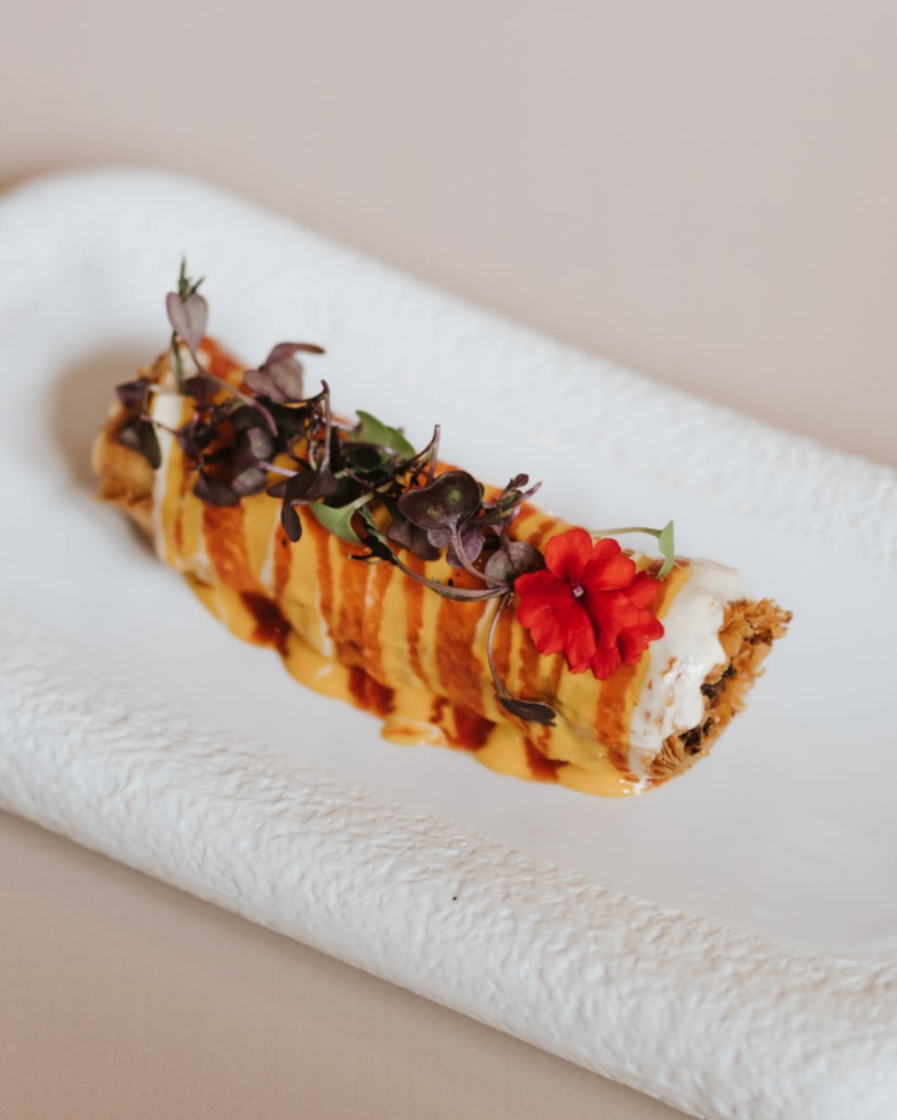 La proposta continua amb plats que juguen entre el carrer i la cuina creativa. El croissant de pulled pork amb gouda fumat i maionesa de chipotle amb mel és intens i addictiu, mentre que el brioix de tàrtar de tonyina amb guacamole de jalapeño aporta frescor i equilibri.