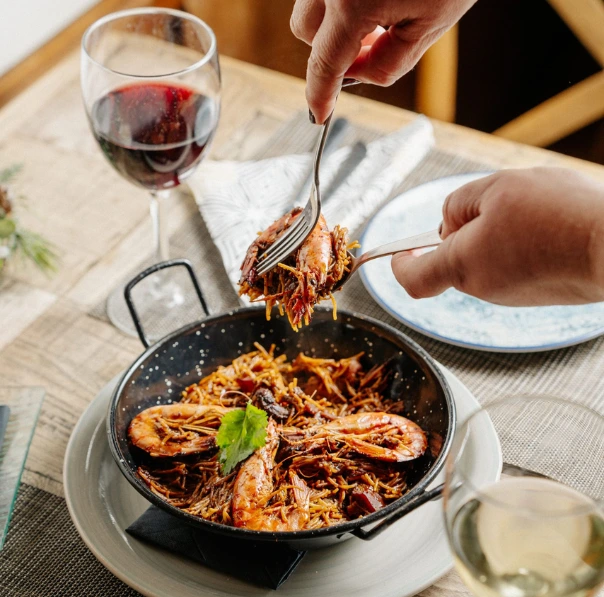 Entre les especialitats destaquen les carns a la brasa, com xai, pollastre, entrecots, bistecs i botifarra casolana; arrossos i fideuàs de peix i marisc; i peix i marisc fresc del Delta de l’Ebre, com llobarro, navalles, escopinyes, orada al forn, calamars, gambes i escamarlans. També podràs tastar tapes i entrants tradicionals, com patates braves, croquetes casolanes, musclos a la marinera o pa amb tomàquet i pernil ibèric.
