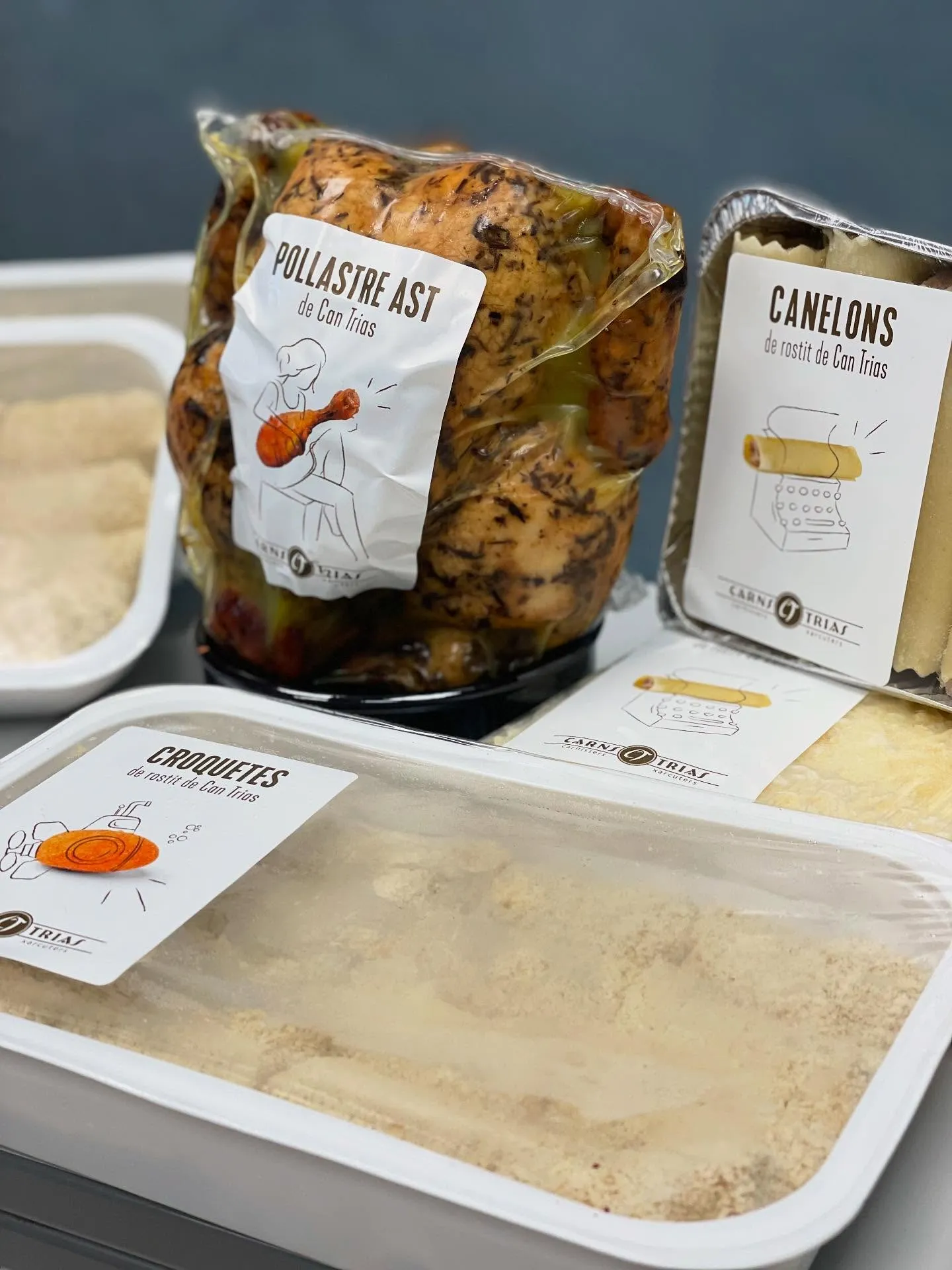 A Carns Trias hi trobaràs una àmplia selecció que inclou aviram, conill, porc, xai, vedella, formatges, embotits i elaborats artesans. Tots els productes es tracten en espais homologats per la Comunitat Europea, assegurant els màxims estàndards de seguretat i higiene.