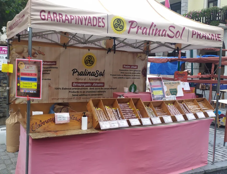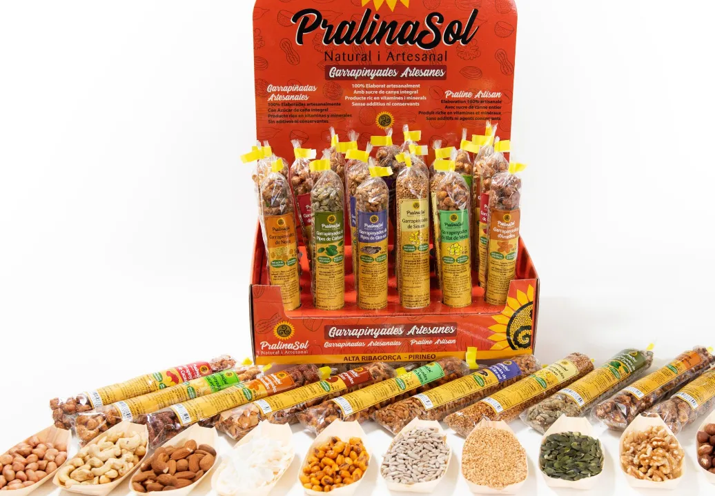 Pralinasol – Garrapinyades Artesanes és una empresa familiar ubicada a Vilaller, Alta Ribagorça (Lleida) que elabora garapinyades artesanes i fruits secs caramel·litzats amb sucre de canya integral. Les seves creacions són el resultat d’una tradició artesanal amb més de 13 anys d’experiència, on cada producte es prepara lentament, sense conservants ni colorants, per conservar tot el sabor autèntic i la textura cruixent que els caracteritza.